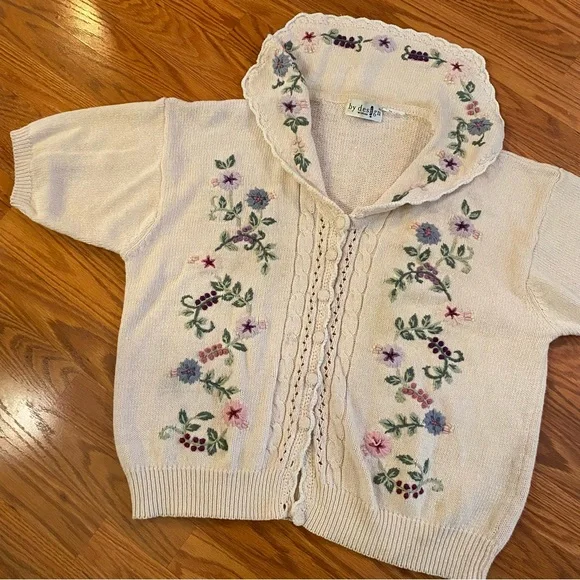 Vintage Sweaters Vintage 9s Crochet Oversized Sweater Knit Cardigan Floral Embroidered Peter Pan Poshmark